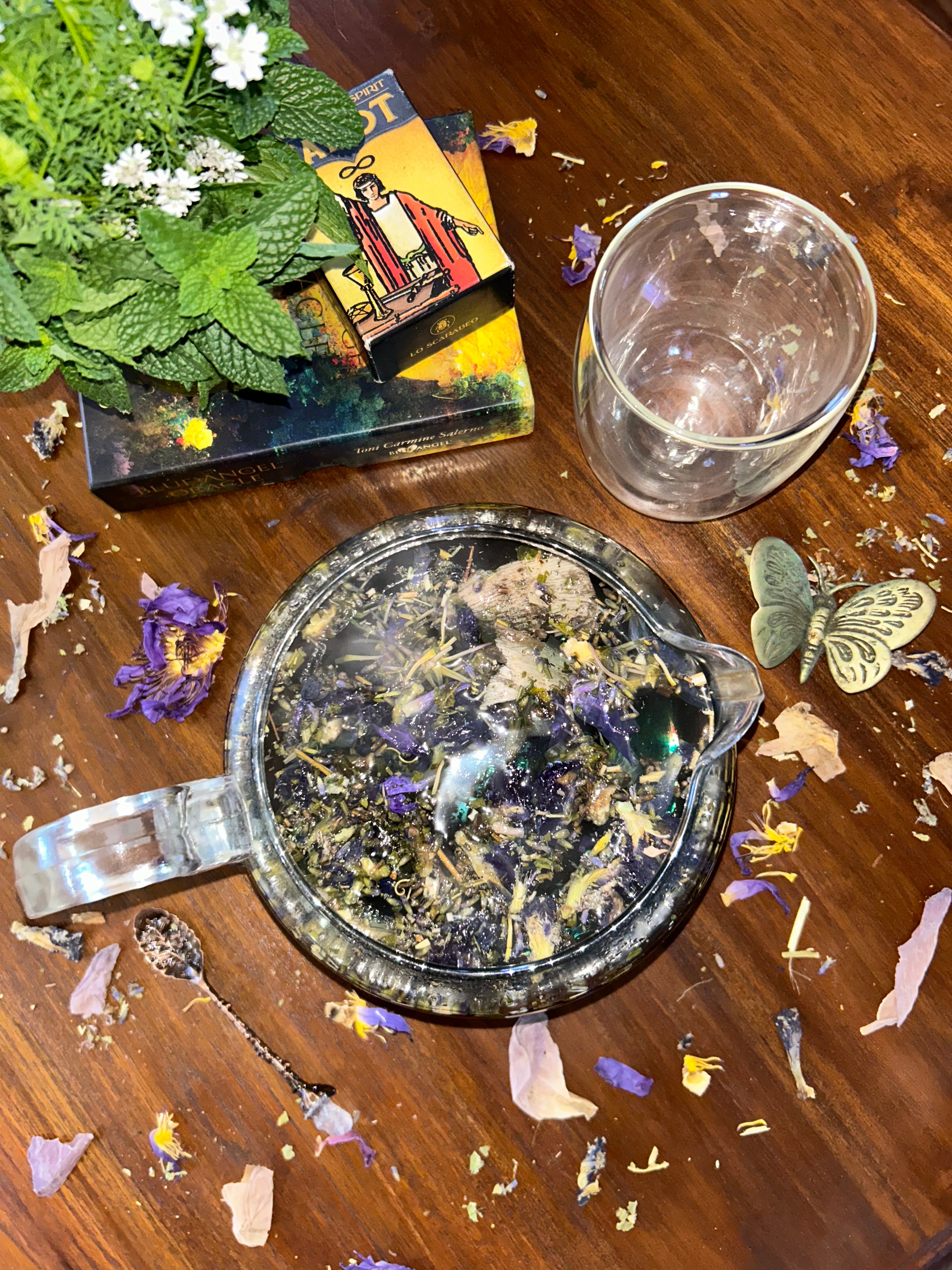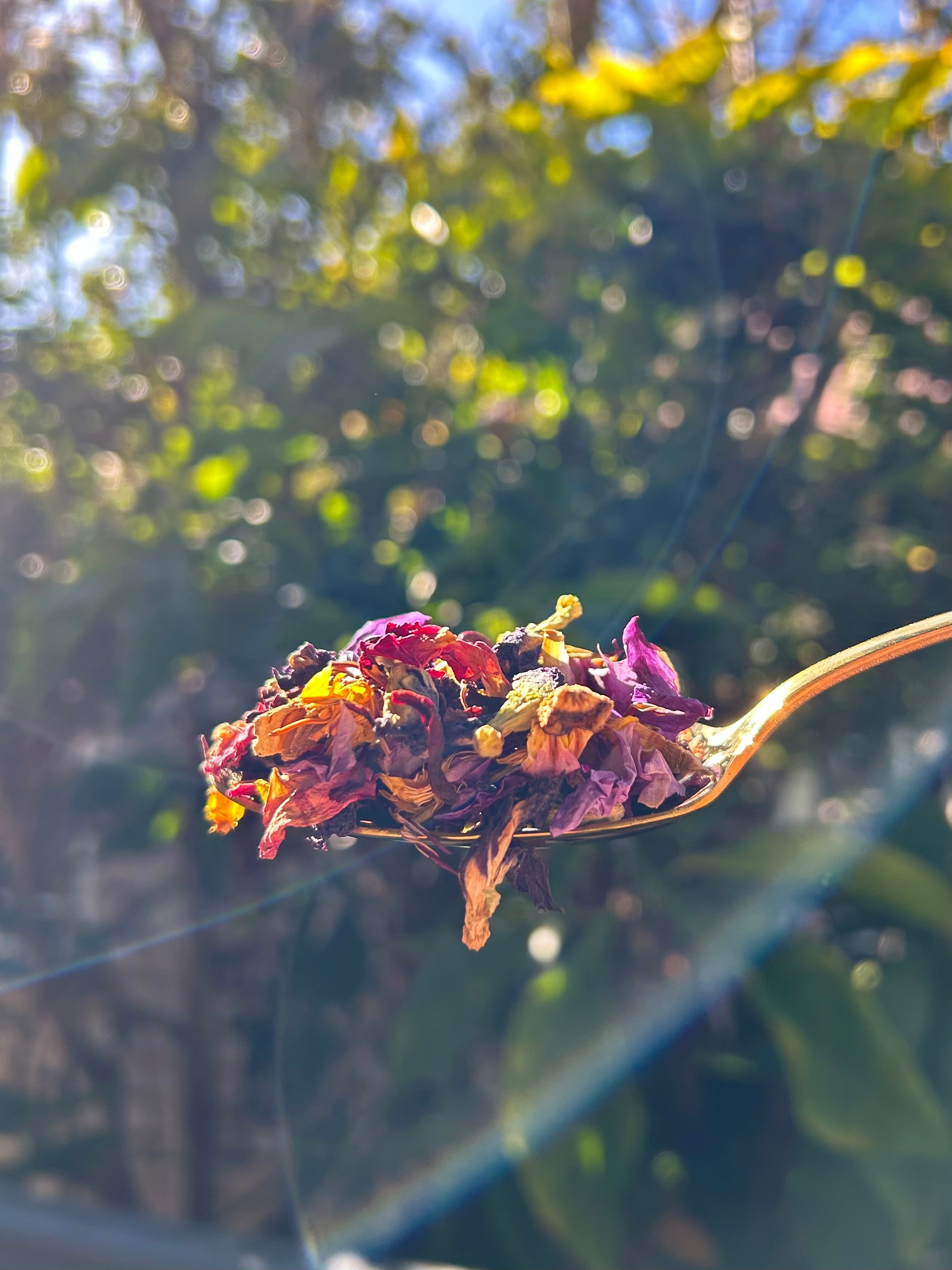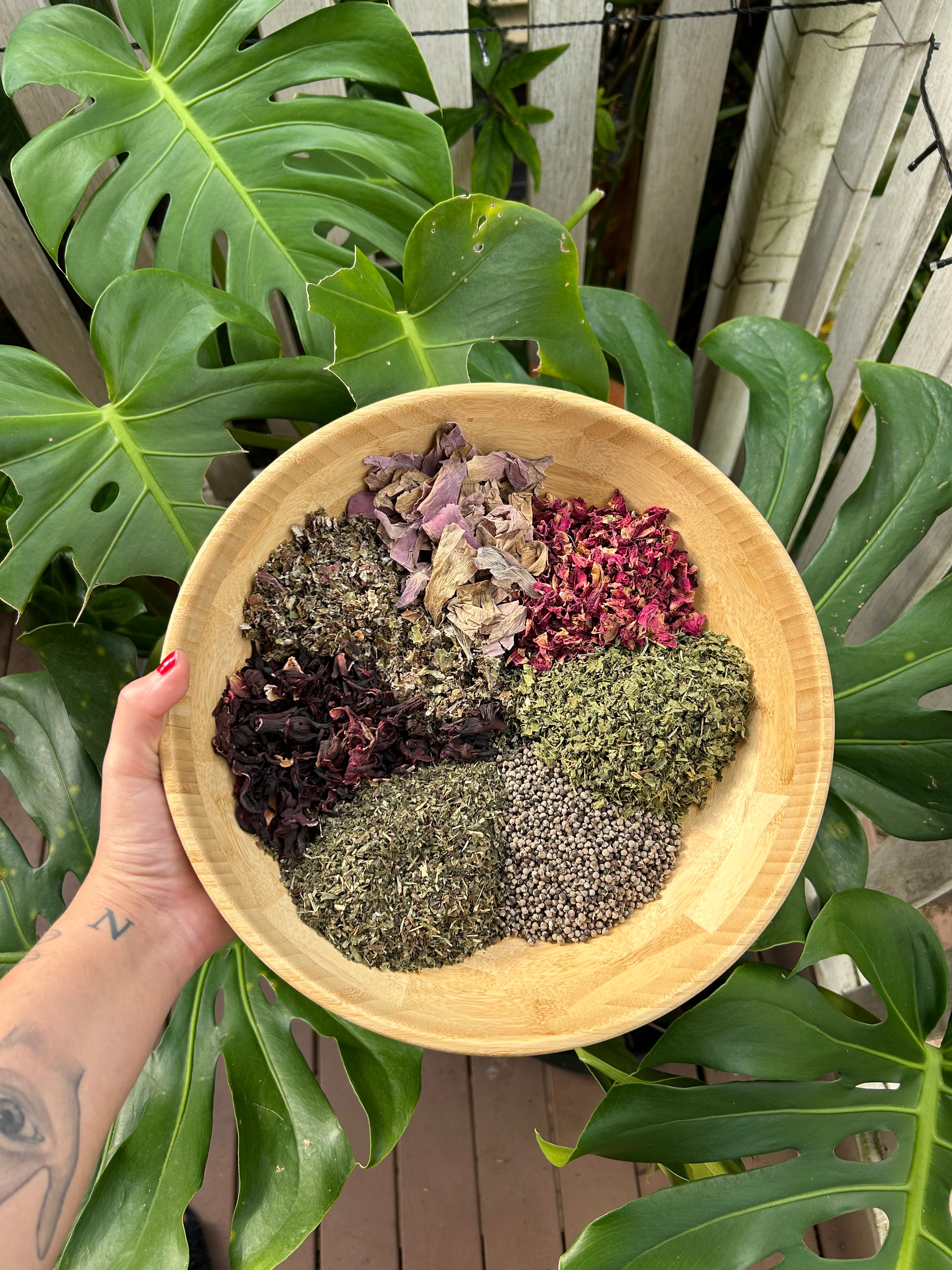 Our small-batch creations are made with the highest quality organic herbs, flowers, and botanicals, carefully selected for their potent healing properties. We honor the energy of each plant, blending them in ways that amplify their natural intelligence to support you where you need it most—whether that’s grounding your body, enhancing your creativity, or guiding you through meditative practices.
